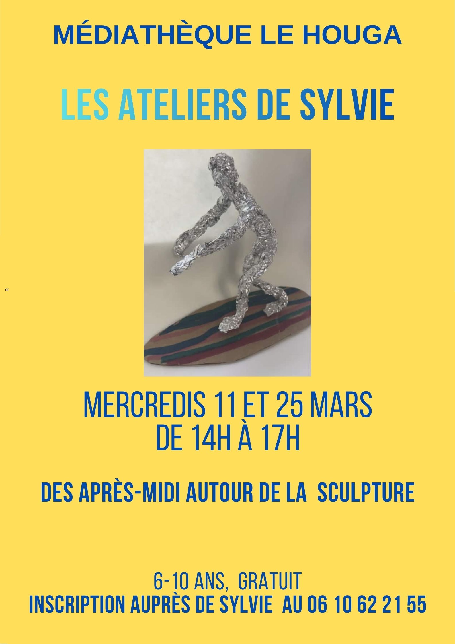Sylvie vous donne rendez-vous les mercredi 11 et 25 mars de 14h à 17h, pour des ateliers autour de la sculpture .