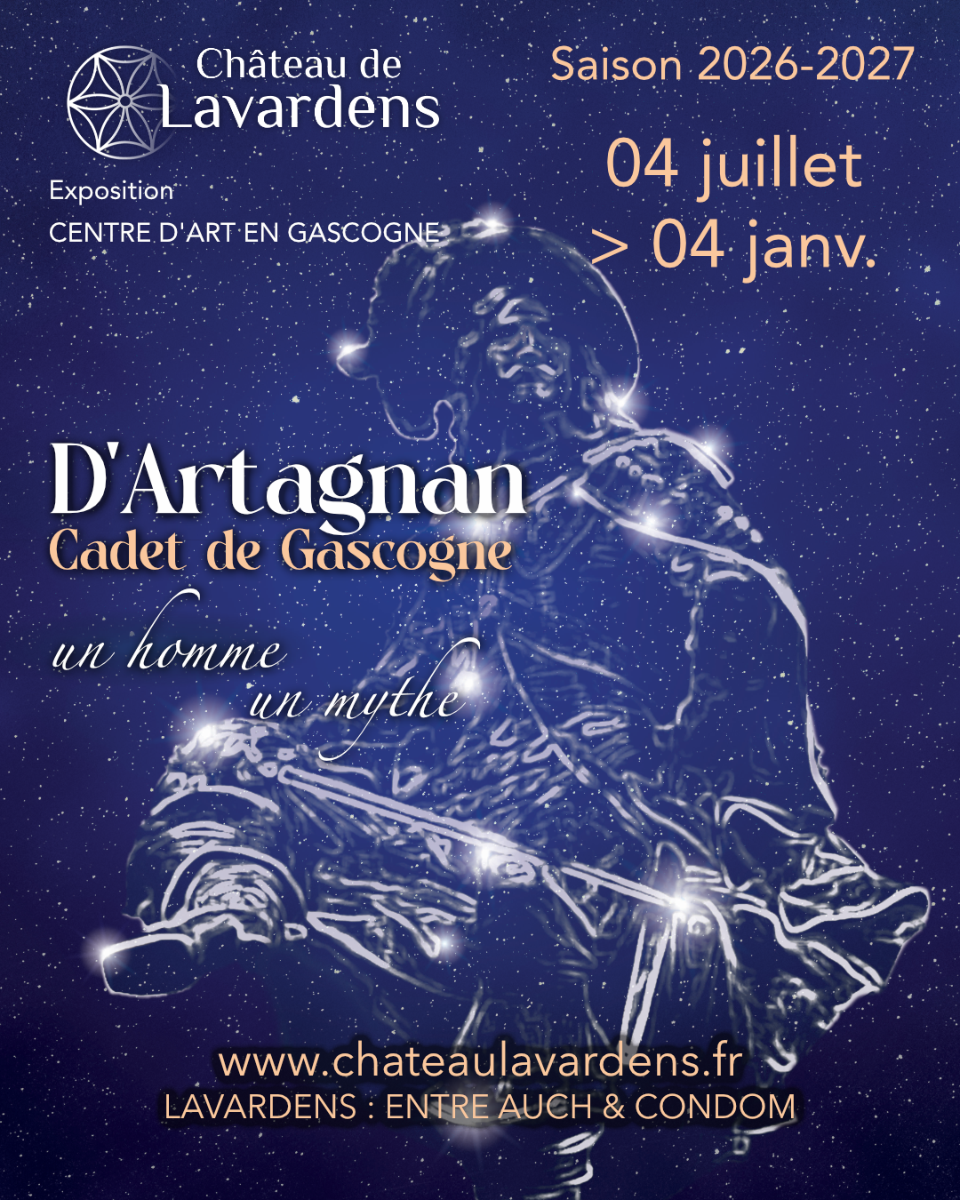 | Forte de son succès exceptionnel en 2025, l’exposition D’Artagnan, cadet de Gascogne. Un homme, un mythe, présentée au château de Lavardens, est prolongée et enrichie en 2026. Avec plus de 25 000 visiteurs en six mois, cette exposition s’est imposée comme un événement culturel majeur en Gascogne, confirmant l’attachement du public à cette figure emblématique de l’histoire et de l’imaginaire français. La prolongation 2026 ne constitue pas une simple reconduction : elle marque une nouvelle étape, une exposition « 2.0 » remaniée et approfondie, tant sur le plan scientifique que muséographique. De nouvelles pièces d’archives, inédites lors de la première édition, viendront compléter le parcours, tandis que certains espaces seront repensés afin d’améliorer le confort de visite, la lisibilité des contenus et l’expérience immersive. |
