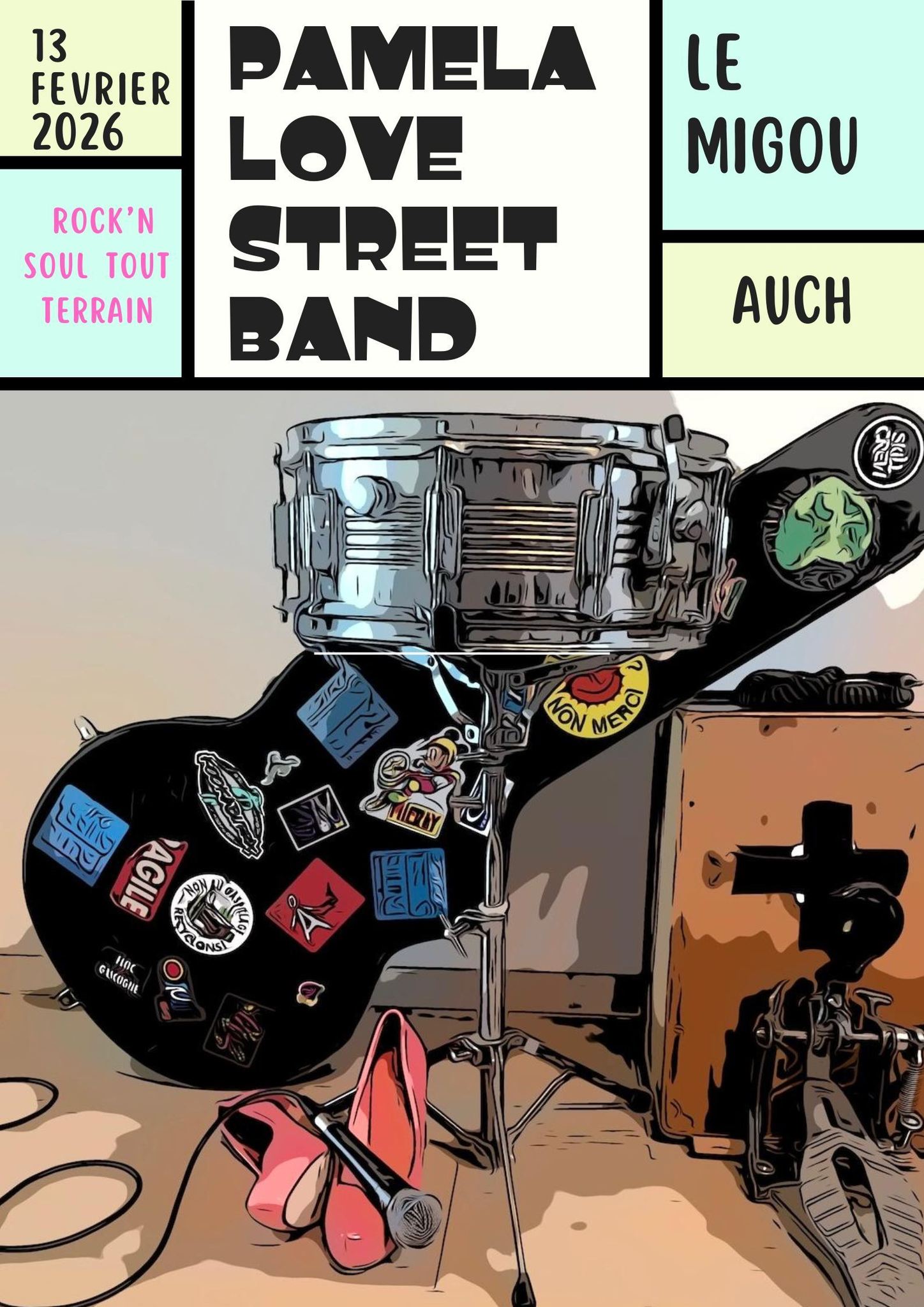 Pamela Love, chanteuse franco-américaine décalée au grand cœur, revient au pays le bagage chargé des sons Rock’n Soul des années 60, 70. Son précieux acolyte Bobby Mac Fire assure le Street Band à lui tout seul : guitare, percussions de rue, choeurs et harmonica. Décidément Bobby sait tout faire! Mais saura-t-il supporter Pamela une tournée de plus…?