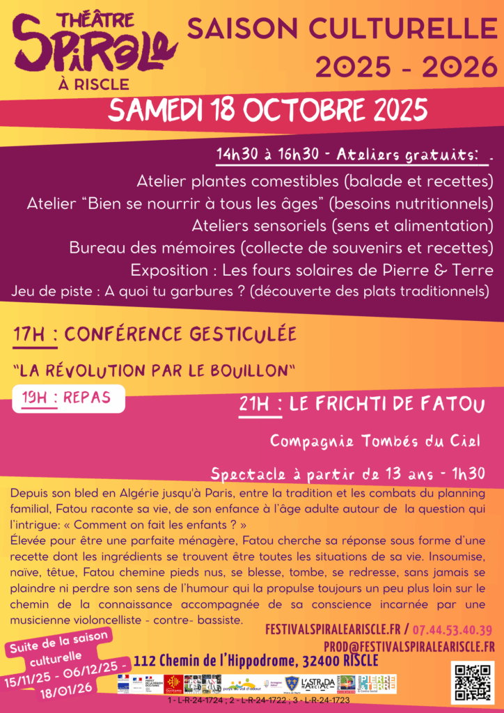 Une belle journée en perspective sous la thématique de l’alimentation, avec des animations et ateliers gratuits, une conférence gesticulée, et clore cette belle journée par un repas et spectacle proposés par l’association Spirale.