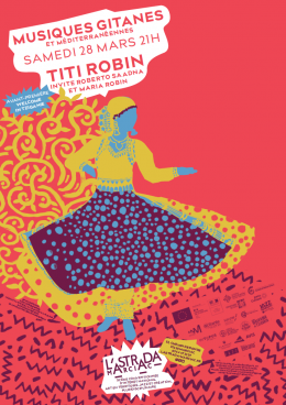 Aux côtés de Titi Robin, Roberto Saadna — guitariste et chanteur originaire du quartier gitan Saint-Jacques de Perpignan et spécialiste de la rumba catalane — apporte toute la chaleur et la subtilité de sa culture musicale. Maria Robin, chanteuse et danseuse formée entre France et Rajasthan, enrichit le trio de sa présence scénique et de ses influences traditionnelles.